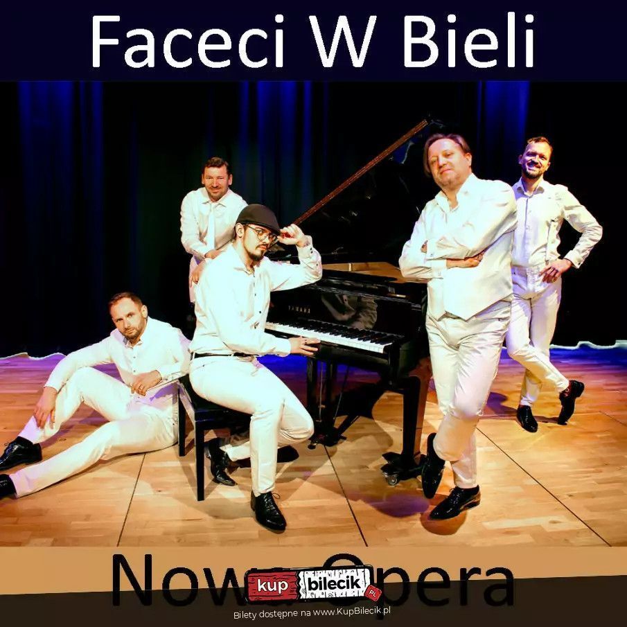 Czterej tenorzy - przystojni, zabawni, obdarzeni wspaniałymi głosami. Twórca zespołu Faceci w Bieli - Grzegorz Uniwersał, zabawny o mocnym lirycznym glosie, pełen wdzięku scenicznego Jarosław Bielecki, utalentowany śpiewak, ale i sportowiec Krzysztof Kozarek, błyskotliwy, o cudownie brzmiącym głosie Paweł Fundament oraz mistrz słowa i ciętej riposty Wojciech Szczygieł, człowiek do zadań specjalnych.